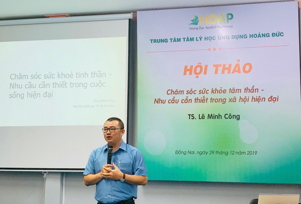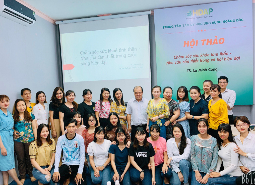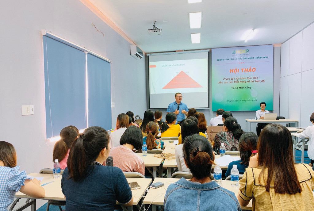 [HDAP] Với mục đích nâng cao nhận thức cho người dân về vai trò và tầm quan trọng của việc chăm sóc sức khoẻ tâm thần; trên cơ sở đó hiểu đúng về vai trò, tác dụng của các chiến lược chăm sóc sức khoẻ tâm thần (trong đó có tham vấn trị và liệu tâm lý); đồng thời, tiếp nhận để chia sẻ những nhu cầu về sức khoẻ tâm thần của cộng đồng, sáng ngày 29-12 Trung tâm Tâm lý học ứng dụng Hoàng Đức đã tổ chức hội thảo chuyên đề “Chăm sóc sức khỏe tâm thần - Nhu cầu cần thiết trong cuộc sống hiện đại”.