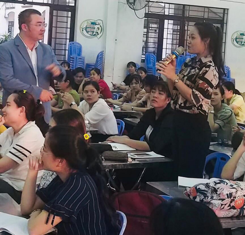Cô giáo Trần Minh Thi đang giảng dạy và chủ nhiệm khối lớp 1 tại trường cho rằng, mặc dù thời gian rất ngắn nhưng bản thân học được nhiều điều từ buổi trao đổi nói chuyện ngày hôm nay. Bản thân cô Thi nhận thấy rằng cần phải thay đổi để học trò và chính bản thân mình thấy được hạnh phúc trong mỗi giờ lên lớp, mặc dù sự thay đổi có thể rất khó khăn. Thầy Quang Vinh, hiệu trưởng nhà trường cảm ơn và đánh giá cao những tri thức, kinh nghiệm mà diễn giả mang lại cho đội ngũ giáo viên của nhà trường và cho rằng, đây là khởi đầu để trong tương lai hai đơn vị sẽ còn nhiều chương trình kết nối, trao đổi chuyên môn hơn nữa.