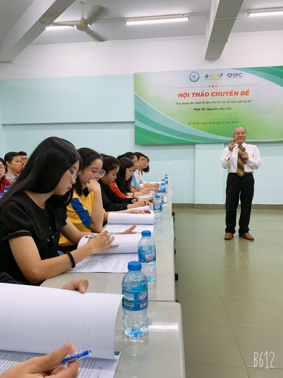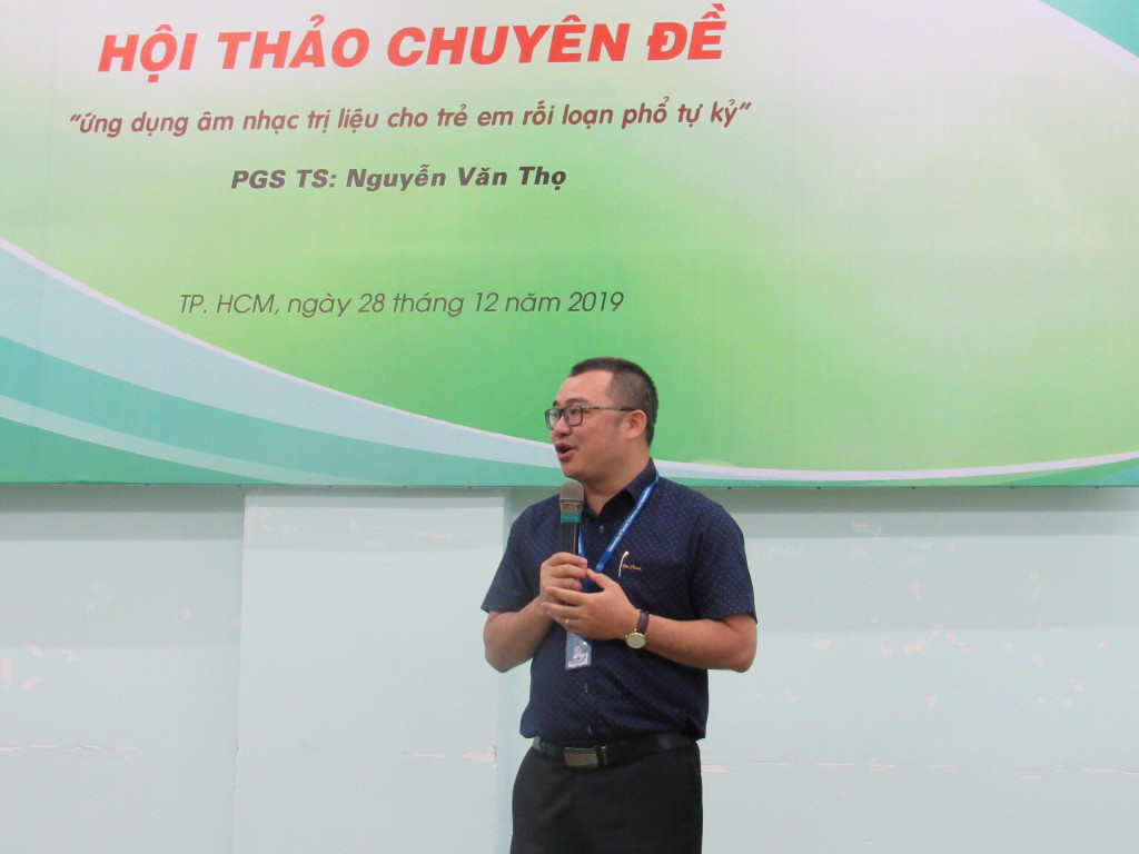 Tại buổi hội thảo PGS.TS Y khoa Nguyễn Văn Thọ - Trưởng Khoa Y – Dược, Đại học Văn Lang, Nguyên Giám đốc Bệnh viện Tâm thần trung ương 2 đã trình bày các nội dung như: Giới thiệu về phương pháp trị liệu âm nhạc cho trẻ rối loạn phổ tự kỉ; Trình bày các phương pháp trị liệu âm nhạc vào trong các lĩnh vực phát triển cho trẻ tự kỉ: Phát triển ngôn ngữ, cảm xúc và giao tiếp xã hội; Giáo dục những khái niệm căn bản trước khi đi học và phát triển vận động cảm giác…