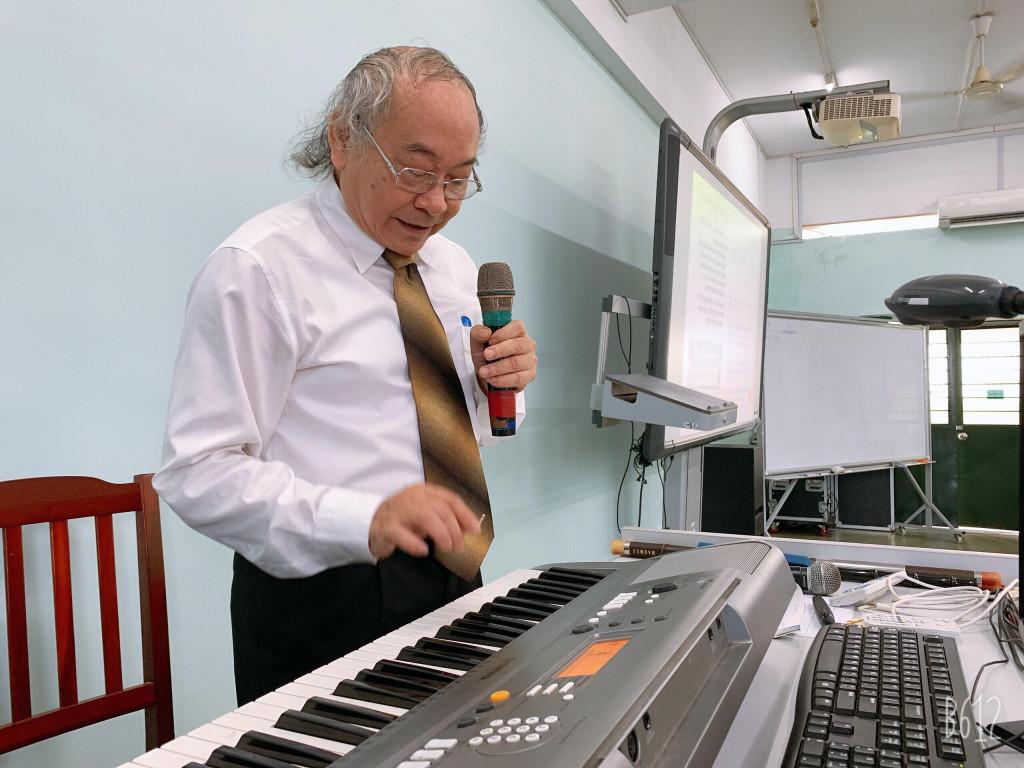 (PGS TS Nguyễn Văn Thọ đang thị phạm một bản nhạc)