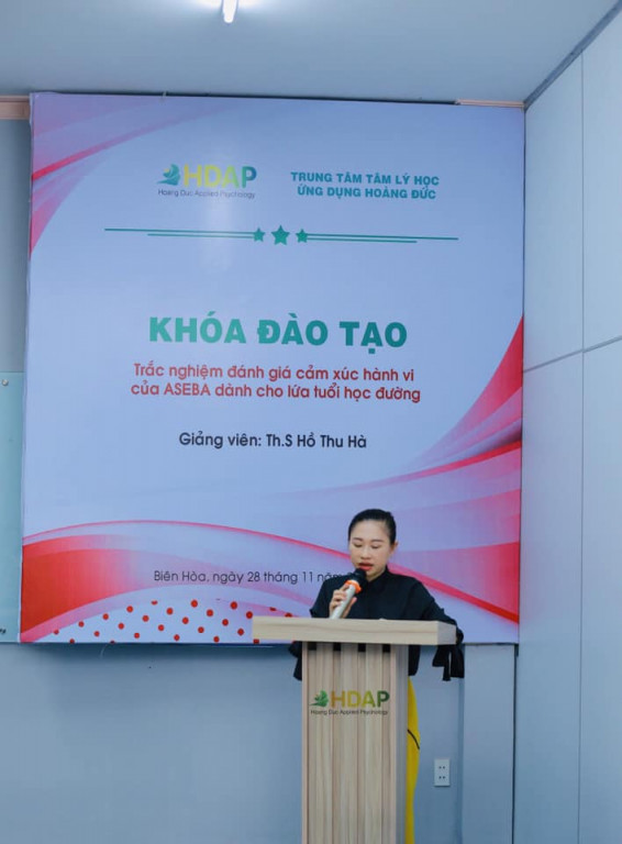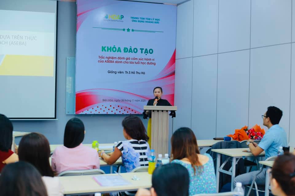 [HDAP] Sáng ngày 28.11.2020, Trung tâm Tâm lý học ứng dụng Hoàng Đức (thuộc hệ thống Hoang Duc Education Group) phối hợp với Trường Đại học Giáo dục, Đại học Quốc gia Hà Nội tổ chức khoá đào tạo “Trắc nghiệm đánh giá cảm xúc hành vi của ASEBA dành cho lứa tuổi học đường” với sự hướng dẫn chuyên môn của Th.S/ NCS Hồ Thu Hà. Tham dự khoá đào tạo có hơn 20 học viên là các nhà tâm lý, giáo dục đặc biệt … đang công tác tại các trung tâm giáo dục đặc biệt, các cơ sở chăm sóc sức khoẻ tâm thần, trường đại học đến từ Đồng Nai, Tiền Giang, TP. Hồ Chí Minh, Long An, Đắk Lắk.