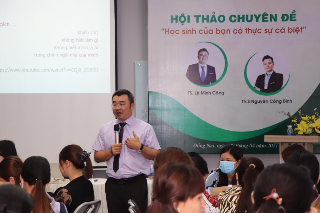 TS Lê Minh Công bắt đầu bằng câu chuyện về các khó khăn, tổn thương của học sinh, xa hơn chính giáo viên cũng đang phải trải qua những khó khăn, nhất là cảm giác bất lực hoặc sự cô đơn trong tiến trình trở thành một nhà giáo. Trong bài trình bày của mình, TS Công nhấn mạnh đến sứ mệnh, lựa chọn mục tiêu và bắt đầu tiến trình thay đổi để hạnh phúc, cảm nhận thuộc về của giáo viên để hướng tới một nhà trường hạnh phúc, học sinh hạnh phúc. Bài trình bày cũng giúp giáo viên hiểu hơn được quy trình, kỹ năng đánh giá các khó khăn của học sinh, trên cơ sở đó có chiến lược một cách hệ thống trong việc hỗ trợ và can thiệp cho học sinh đang có những khó khăn như bài trình bày của Ths Nguyễn Công Bình. Thấu hiểu – Yêu thương và Tin tưởng, Trao giá trị chính là chìa khoá để giúp trẻ hạnh phúc và bản thân nhà giáo cũng hạnh phúc.