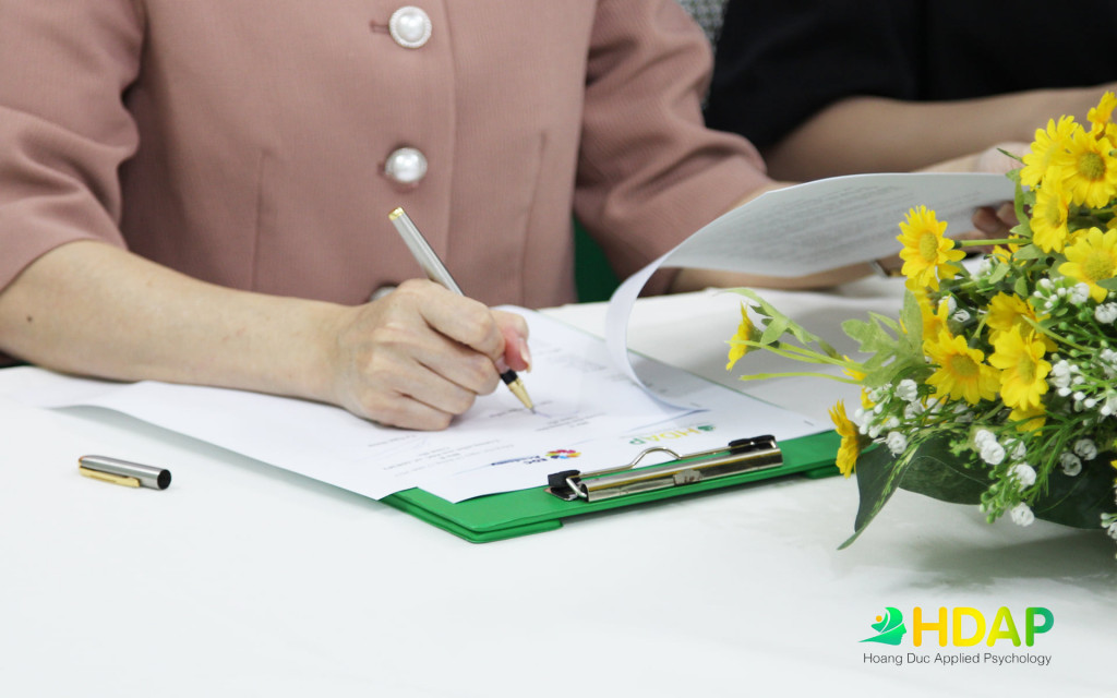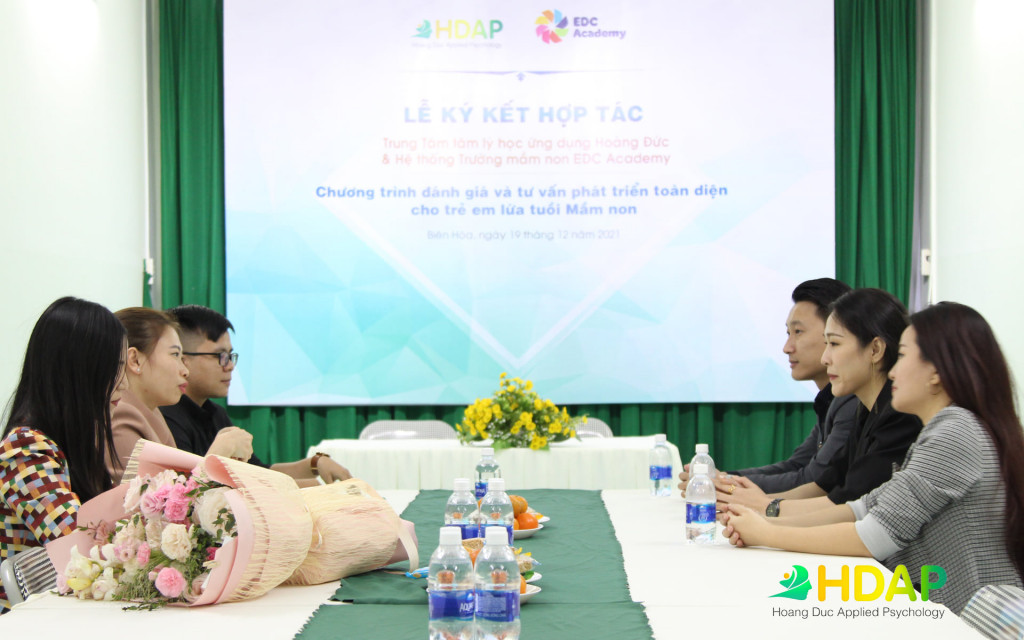[HDAC] Sáng ngày 19/12, Trung tâm Tâm lý học ứng dụng Hoàng Đức và Hệ thống Trường mầm non EDC Academy (TP Hồ Chí Minh) đã tổ chức lễ ký kết thỏa thuận hợp tác triển khai “Chương trình đánh giá và tư vấn phát triển toàn diện cho trẻ em lứa tuổi mầm non".